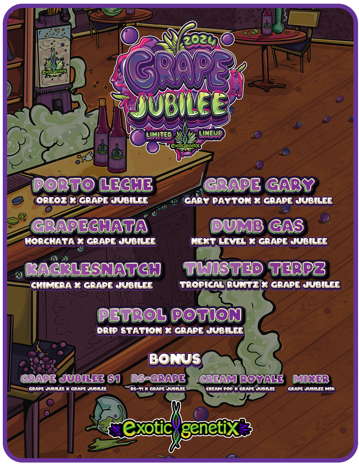 Freebie pack is one of the following: Grape Jubilee S1 (Grape Jubilee X Grape Jubilee), Cream Royale (Cream Pop X Grape Jubilee), RS-Grape (RS-11 X Grape Jubilee).
