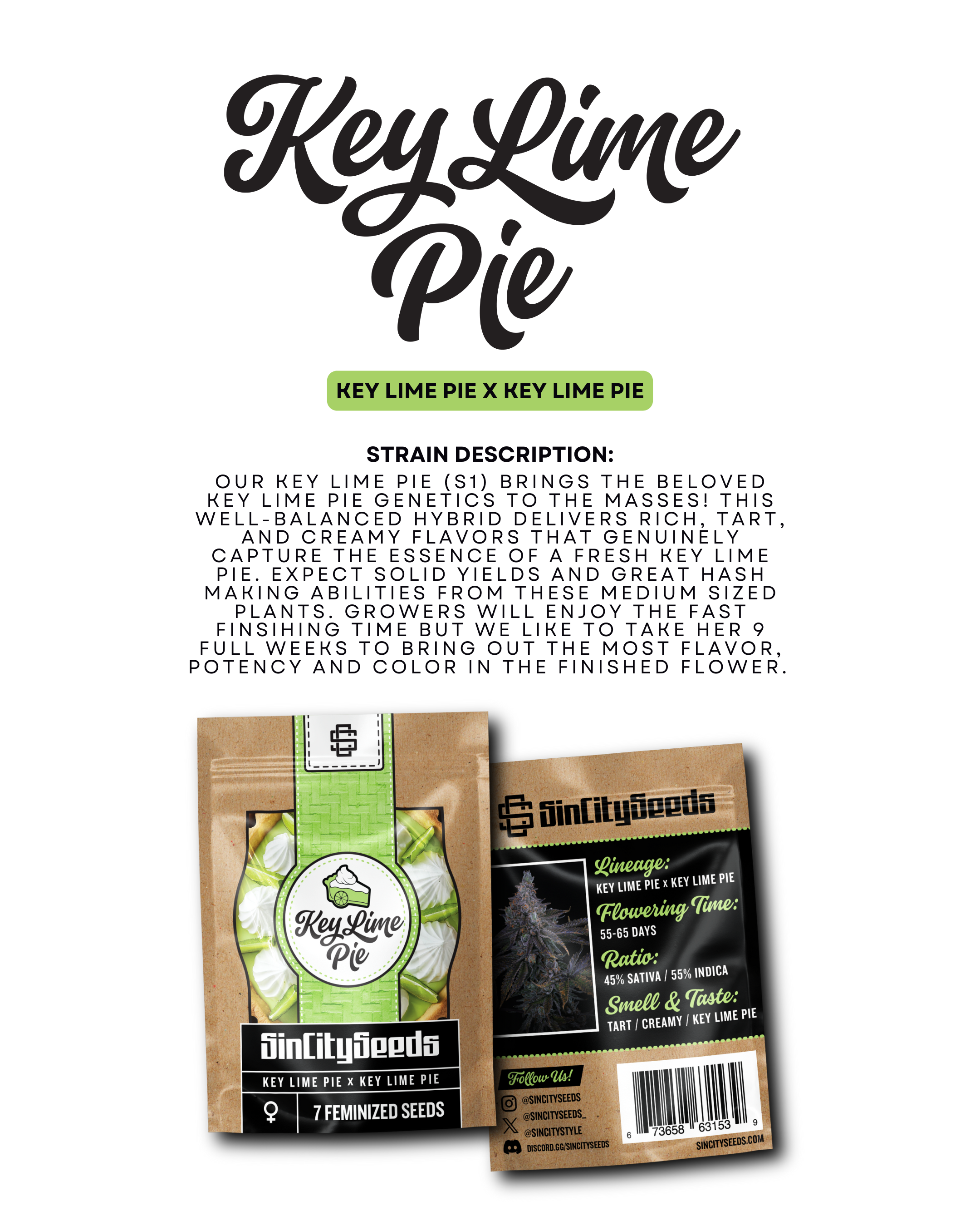 Includes 1:1 freebie with every pack of Lime TK (Triangle Kush x Key Lime Pie) or Key Lime Sherbert (RS11 x Key Lime Pie).