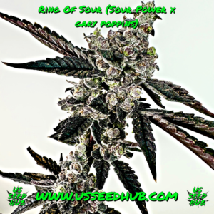 **Description**: Since the very first time I laid my eyes on the Sour power gifted to me by Constantine from Hortilab Seeds many years ago, I knew not only was she special, but I also knew she would hold a special place in my heart for a very long time! She was a major building block in not just the Triple OG but eventually even Tina. The way the original Sour Power stacked, the way she smelled, the way she smoked, true sour flavor with a taste of OG that was unmistakably fantastic! Fast forward to present day with a touch of Gary Poppins now on board and shhheeeeeeessh… Instant winner baby!!! I loved the original Sour Power first because of how she stacked, well now she stacks even better with those beautiful little round pod like sour calyxes stacked on top of one another! I loved original Sour Power for how she smelled, well now she smells even more amazing with a terpy sour peach ring punch! I loved the way the original Sour Power smoked, well you guessed it, now she tastes even crazier with the full transfer of those wicked killer sour terps transferring directly to your tongue baby! This one is special folks! If you’re ready for a unique mega stacker with a touch of something pungent with power, jump on board and get you a pack of this Ring of Sour!!!