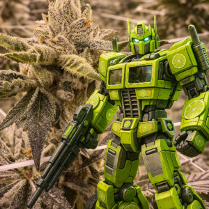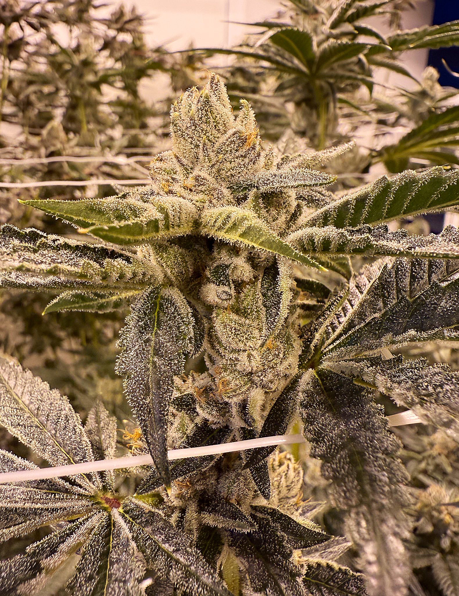 The nose leans heavily into sharp lime zest layered over deep gas and a chemical, eve watering, burning rubber backend, almost test-tube-meets-tire-shop, giving it that signature Umami complexity. Plants show strong lateral branching with tight internodal spacing. Moderate 2x stretch and 8-9 week flowering time.
